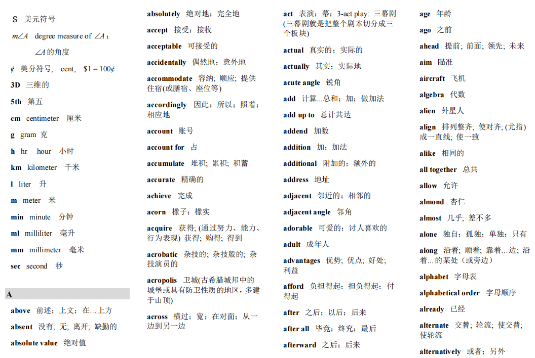 试卷语言:全英文(提供在线英汉数学词汇手册)