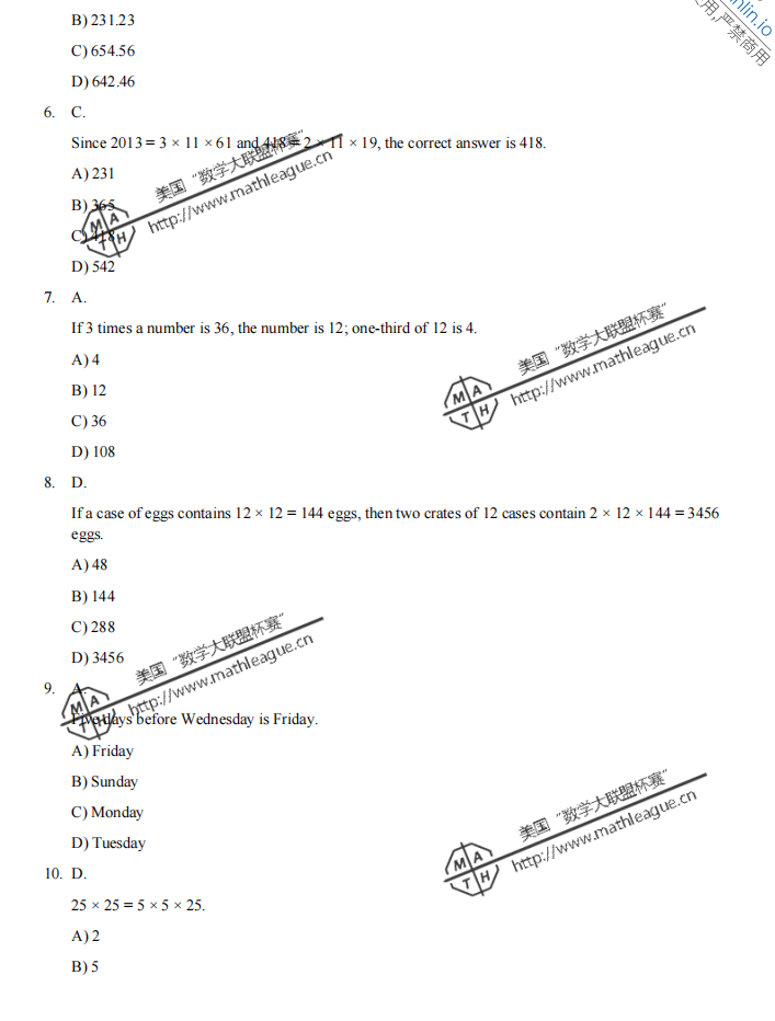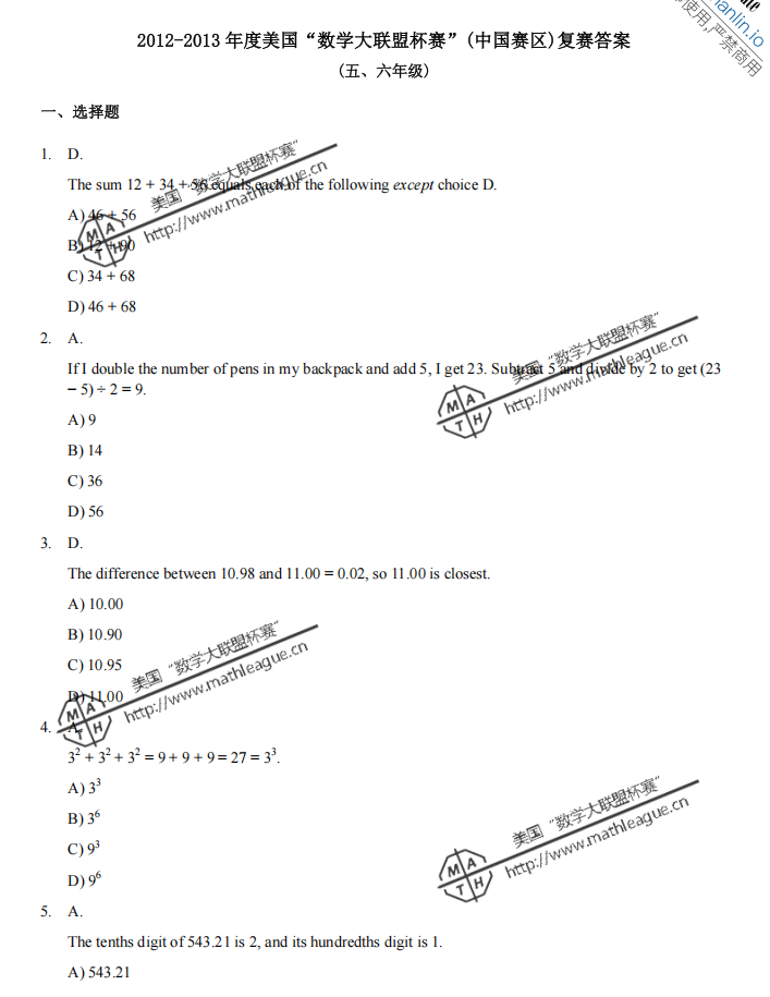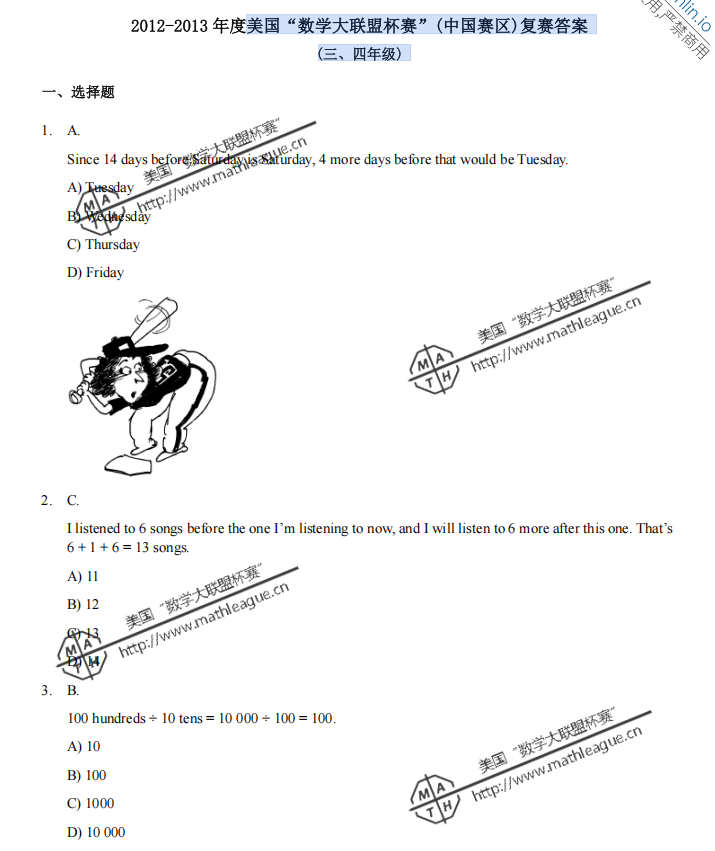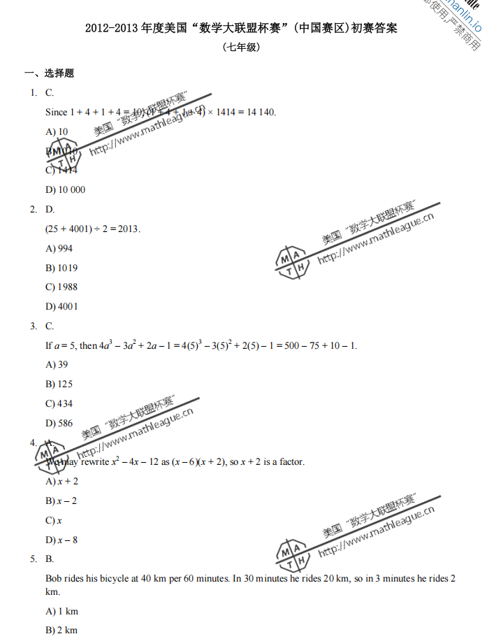 历年Math League初赛/复赛/决赛/夏季挑战赛真题&答案等资料⇓