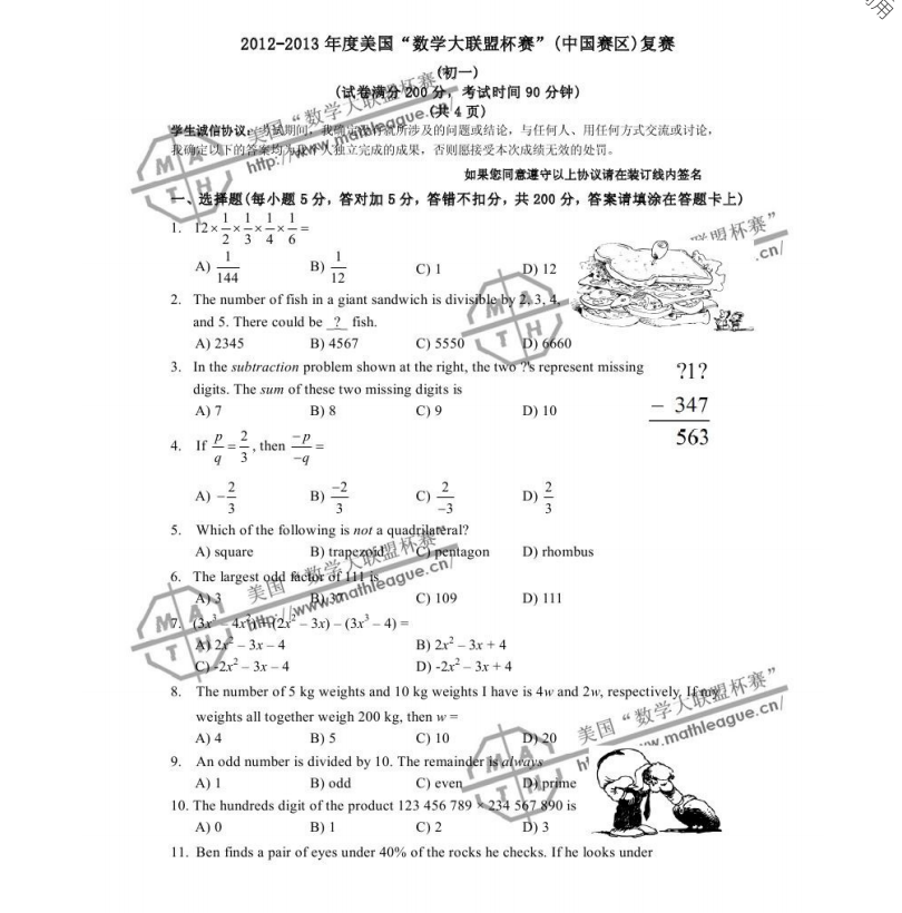 美国数学大联盟竞赛不仅仅是一场考试,更是一次数学思维的狂欢。它等待着每一位热爱思考、勇于探索的少年加入这场智慧盛宴,开启属于自己的数学冒险之旅。