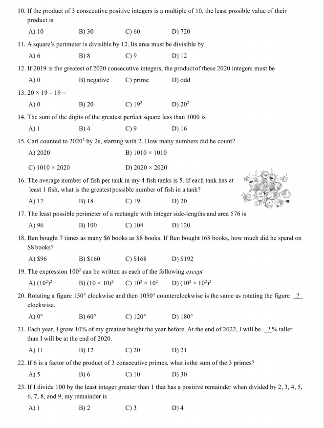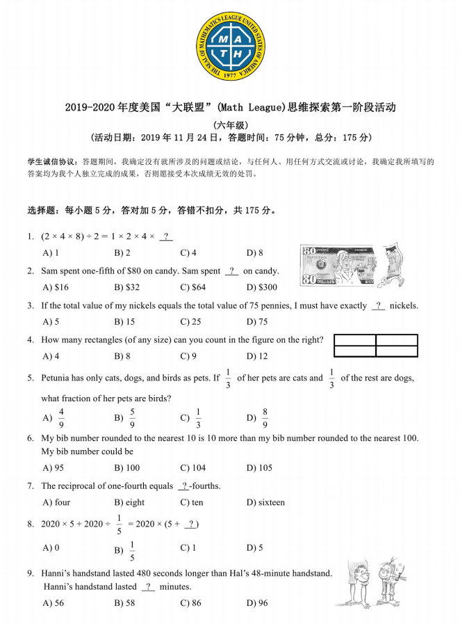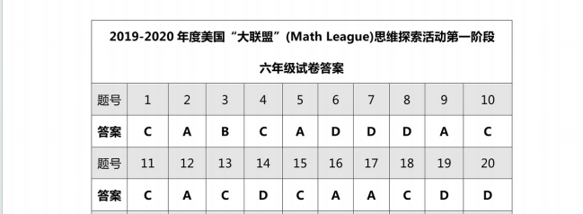 2019-2020 美国MathLeague 初赛六年级真题+答案在线看!来试做一下