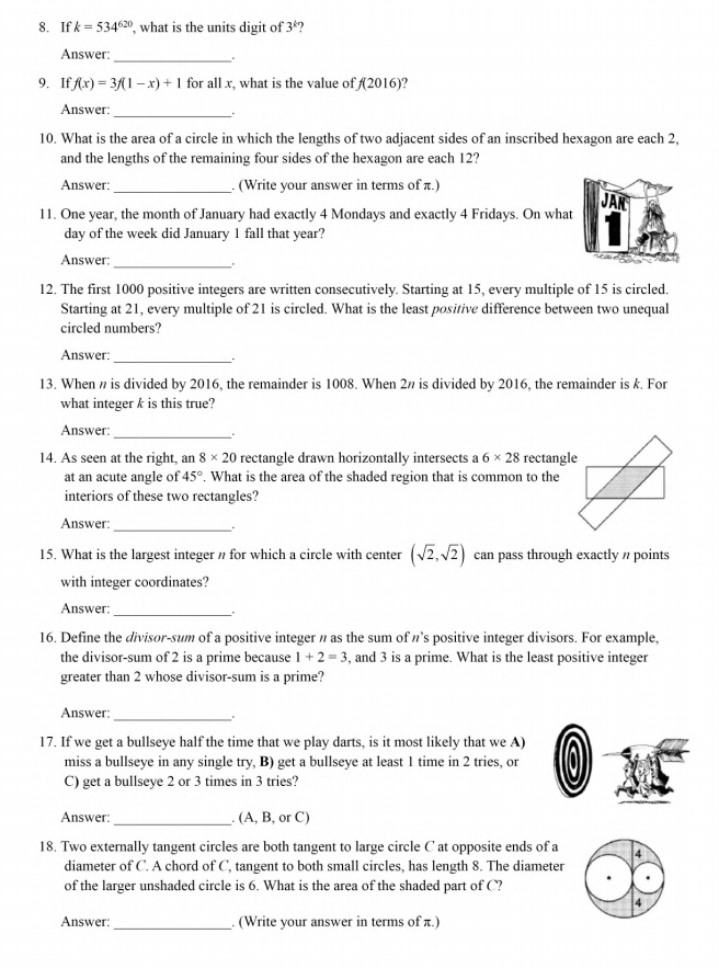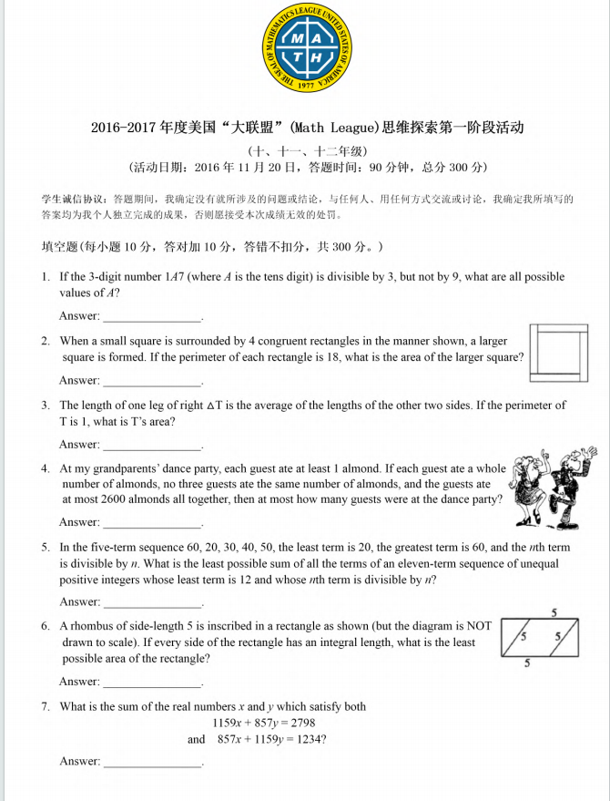 2016-2017 美国MathLeague 初赛10、11、12年级真题+答案在线看!来试做一下 真题在线做! 答案在线看! (篇幅有限,仅展示部分) 扫码即可免费下载完整版真题+答案解析⇓ 还可以免费下载 Math League历年初赛/复赛/决赛/夏季挑战赛真题&答案等资料⇓