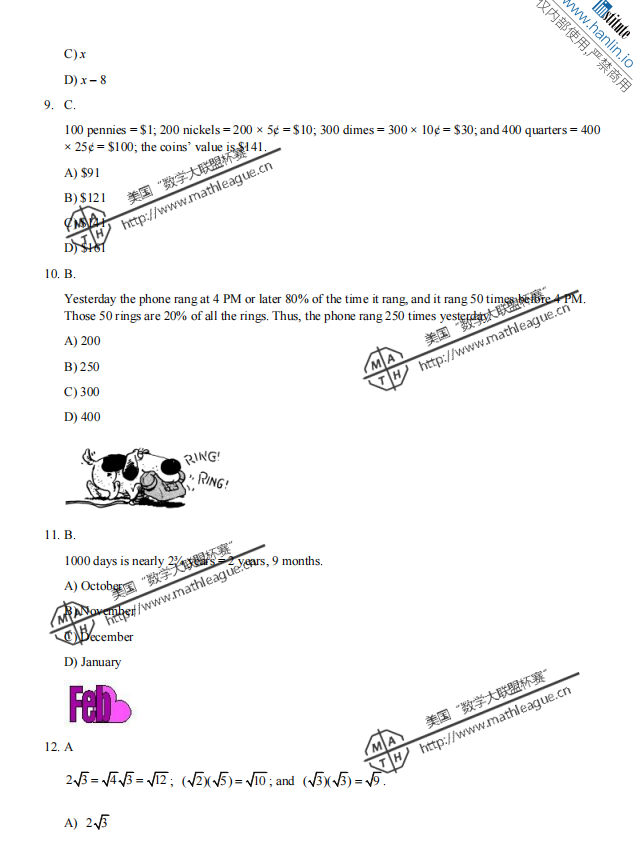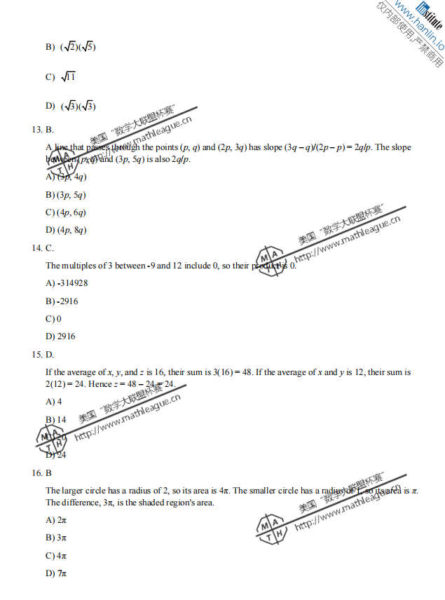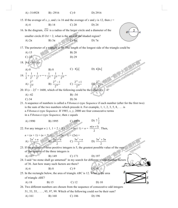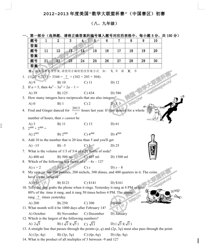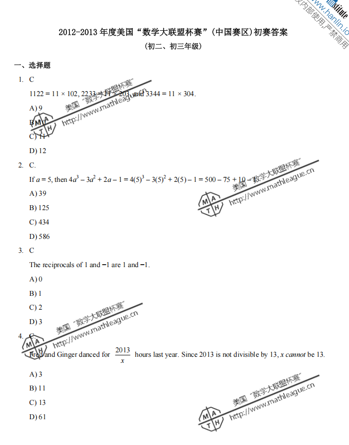 2012-2013 年度美国“数学大联盟杯赛”(中国赛区)初赛真题及答案 (初二、初三年级) 1、真题 2、答案 (*篇幅有限,仅展示部分) 扫码即可免费下载完整版真题+答案解析⇓ 还可以免费下载 Math League近十年初赛/复赛/决赛/夏季挑战赛真题&答案等资料⇓