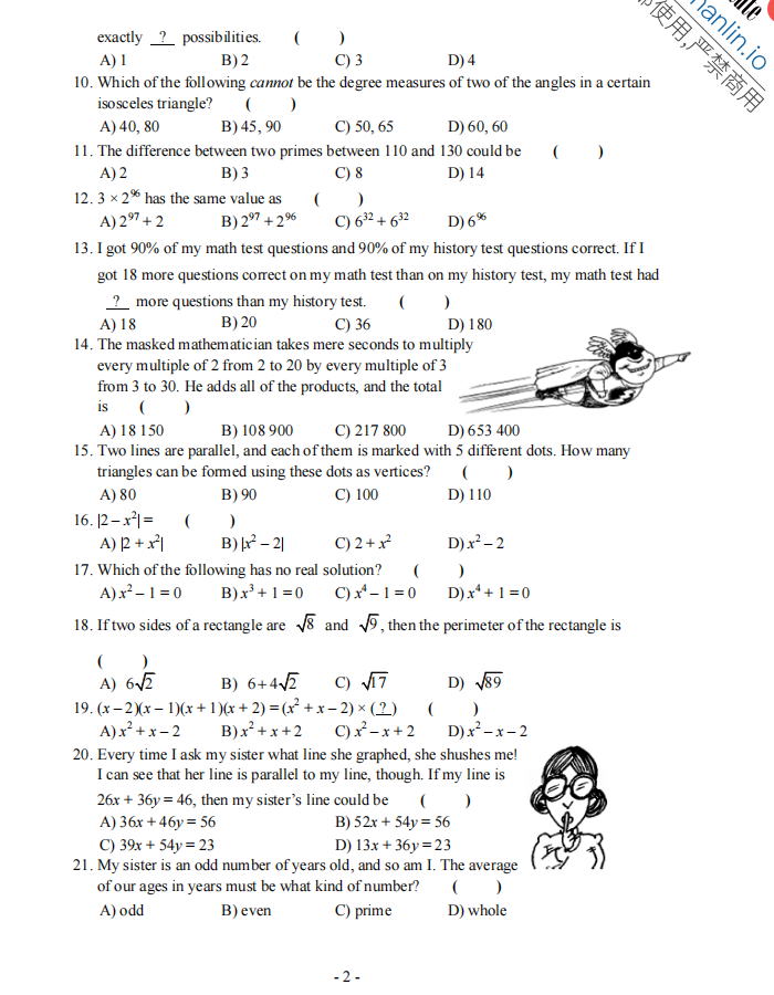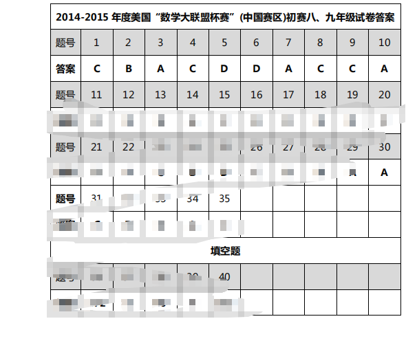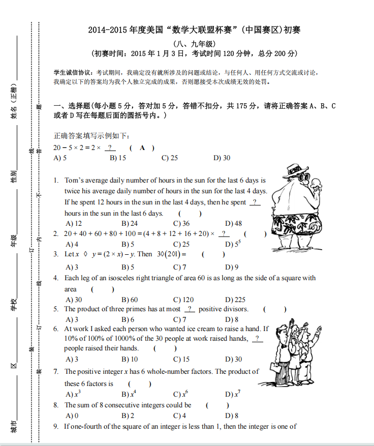 2014-2015 年度美国“数学大联盟杯赛”(中国赛区)初赛试卷真题及答案(八、九年级)