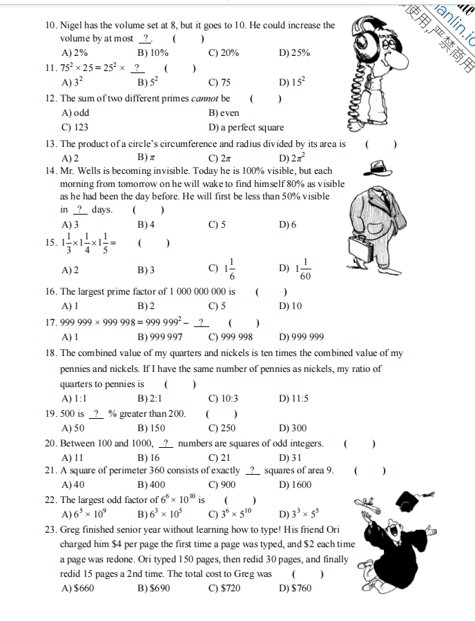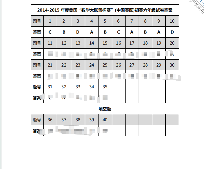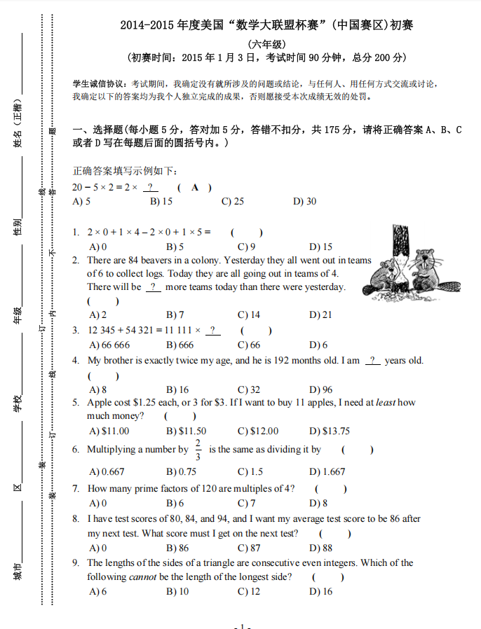 2014-2015 年度美国“数学大联盟杯赛”(中国赛区)初赛真题及答案 (六年级) 1、真题 2、答案 (*篇幅有限,仅展示部分) 扫码即可免费下载完整版真题+答案解析⇓ 还可以免费下载 Math League近十年初赛/复赛/决赛/夏季挑战赛真题&答案等资料⇓