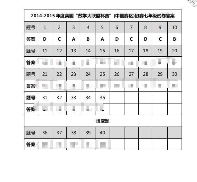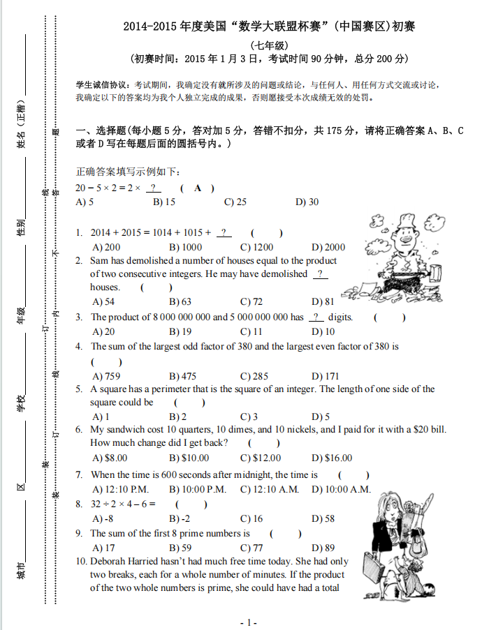 2014-2015 年度美国“数学大联盟杯赛”(中国赛区)初赛真题及答案 (七年级) 1、真题 2、答案 (*篇幅有限,仅展示部分) 扫码即可免费下载完整版真题+答案解析⇓ 还可以免费下载 Math League近十年初赛/复赛/决赛/夏季挑战赛真题&答案等资料⇓