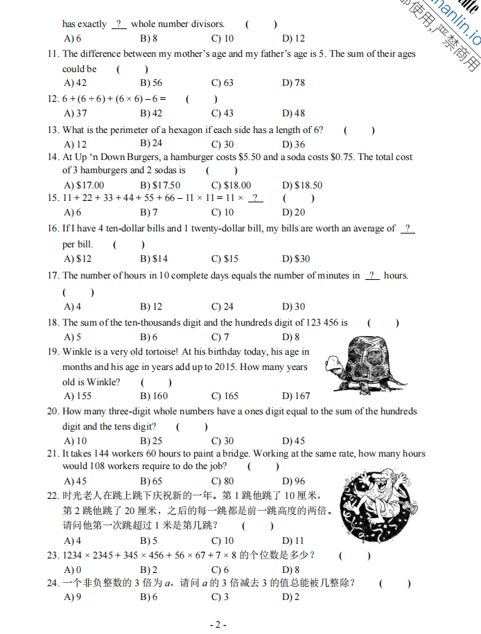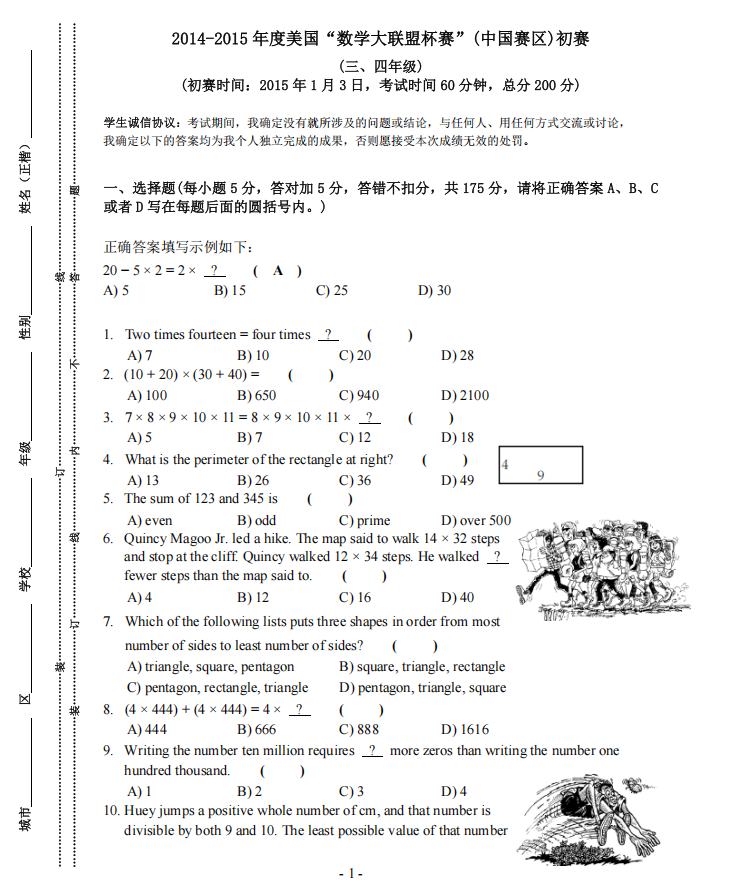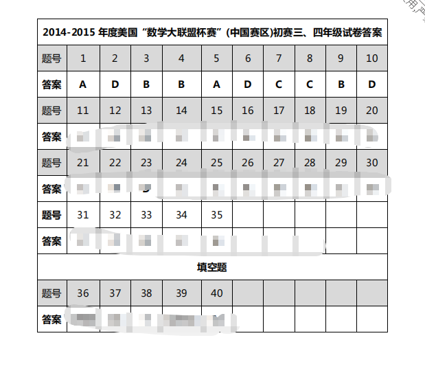 2014-2015 年度美国“数学大联盟杯赛”(中国赛区)初赛真题及答案 (三、四年级) 1、真题 2、答案 (*篇幅有限,仅展示部分) 扫码即可免费下载完整版真题+答案解析⇓ 还可以免费下载 Math League近十年初赛/复赛/决赛/夏季挑战赛真题&答案等资料⇓